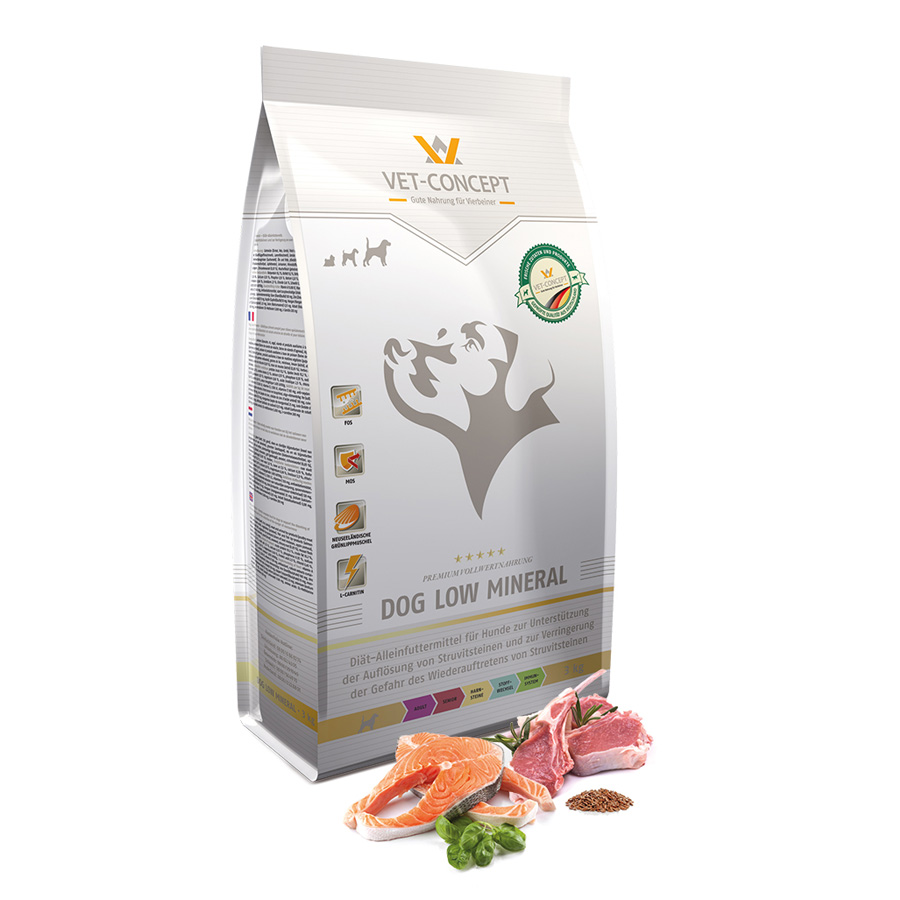 A meglévő struvit kövek feloldását alacsony, de nagyon könnyen emészthető fehérjetartalom, alacsony magnéziumtartalom és vizelet savanyító anyagok segítik elő. A speciális receptúra úgy lett kialakítva, hogy csökkentse a struvit kövek újbóli megjelenésének kockázatát. A DOG LOW MINERAL támogatja a vizelet pH-értékének csökkentését (6,2 - 6,5). A krokett formája és struktúrája biztosítja a legjobb elfogadást, elősegíti az intenzív rágást és a fogápoló hatást.