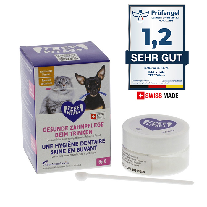 Csak egy adagolókanálnyi TEEF Vitae+ szükséges naponta az állat ivóvizéhez.